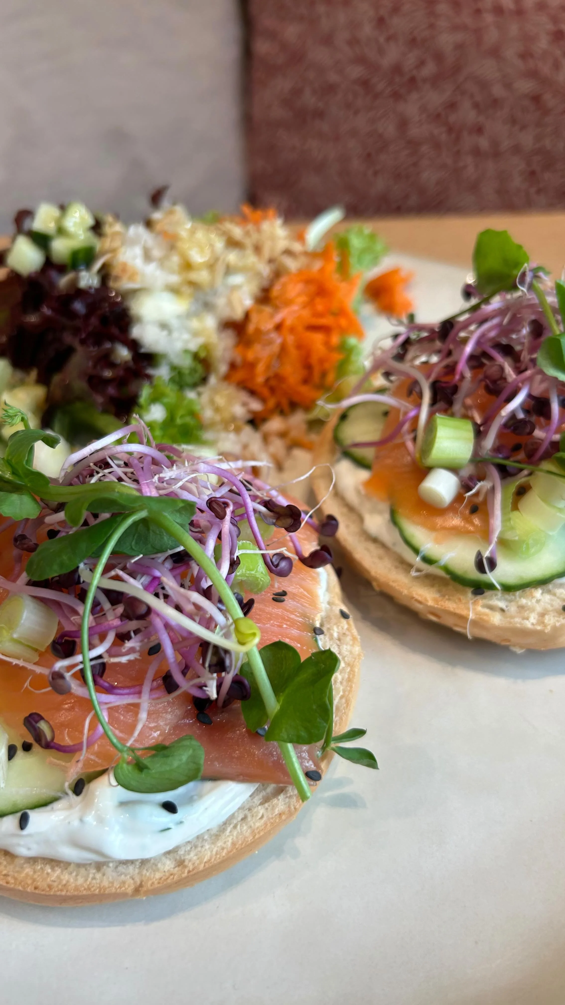 La maison Douce c’est des salades, tartines, croques, tartes salées, soupes, suggestions gourmandes et un coin sucré (brownies, cookies, cakes, tartes…) qui côtoient une gamme de produits plus healthy et végétariens.